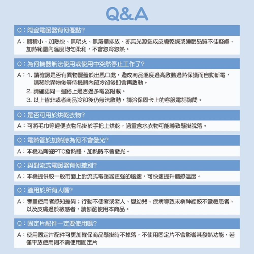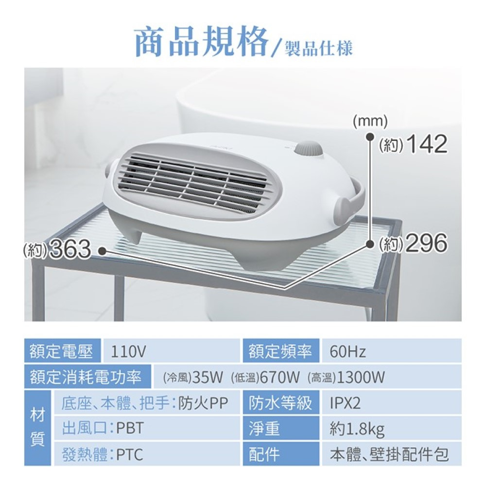 .搭載優質PTC陶瓷發熱體,穩定不間斷熱風。