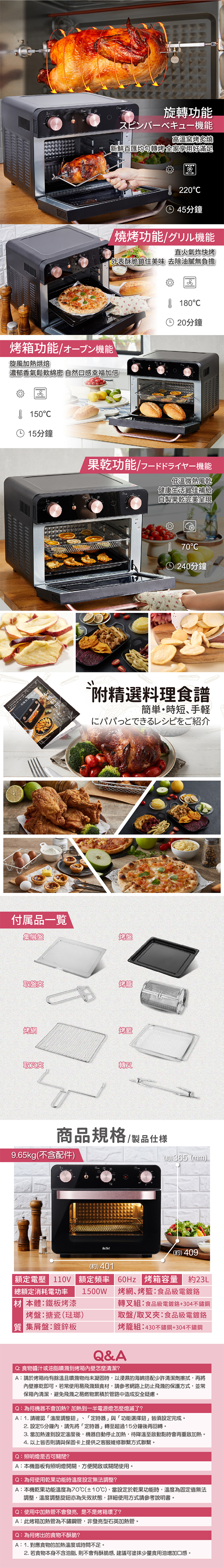 .旋轉烤雞、氣炸、燒烤、乾果、糕點烘焙一機完成。