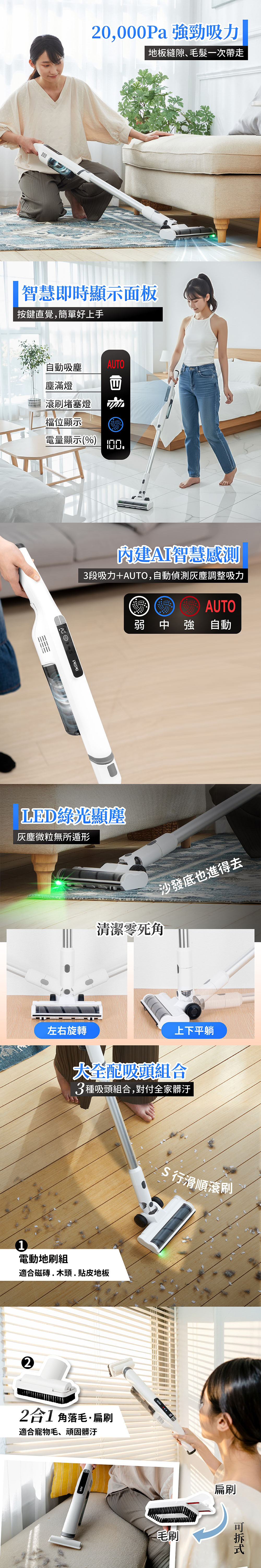 *20,000Pa 強勁吸力,地板灰塵瞬間帶走