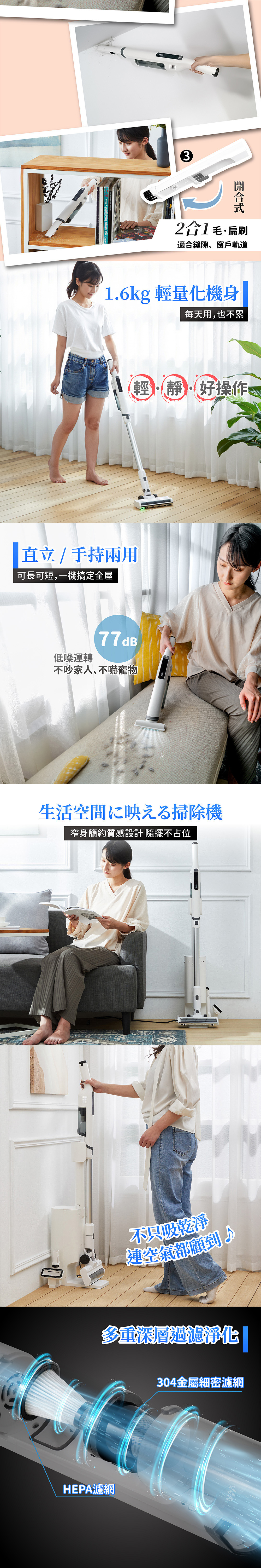*直立/手持兩用設計,可長可短,一機搞定全屋