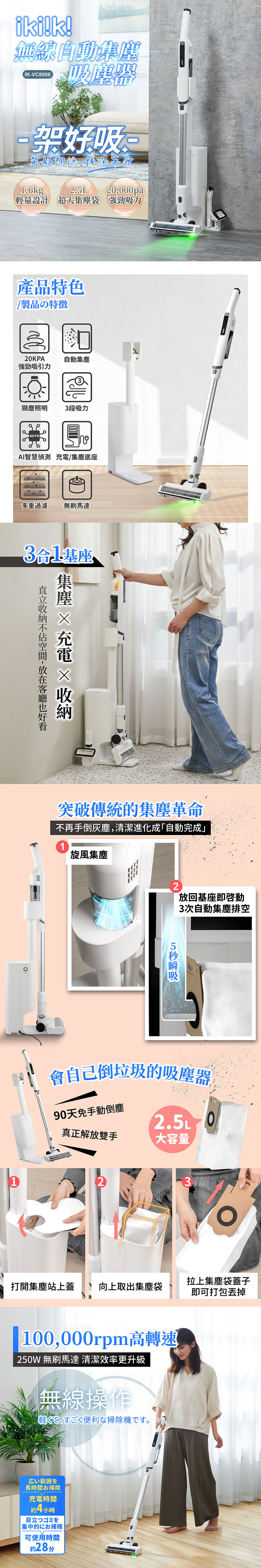 *3合1基座(集塵×充電×收納),充電方便,使用更彈性